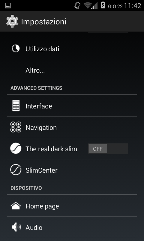 Allora, la rom è veloce, stabile, completa. Ieri sera ho avuto qualche problema di segnale 3G ma dopo aver riavviato è andato tutto a posto e bisogna dire che da un'ora e mezza smanettavo con le impostazioni anche di root per cui è probabile che l'avessi destabilizzata un po'. Tra parentesi, c'è un menu nelle impostazioni "Slimcenter", chiamato "SlimSizer", che permette senza troppi casini di file manager eccetera di eliminare APP di sistema! Io l'ho usato per togliere il file explorer, il programma dell'IRC, Nova Launcher (io uso Google Home).