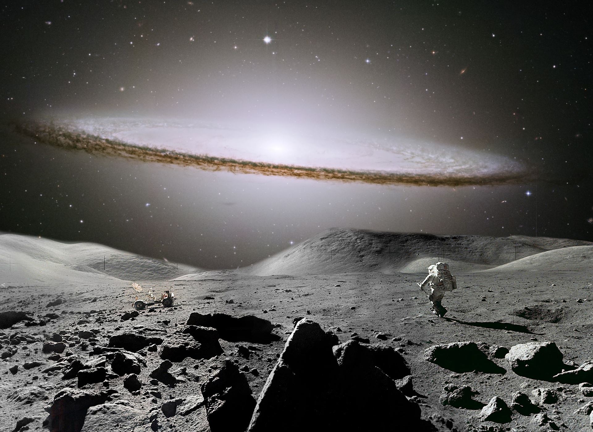 Un po' di fotomontaggi tratti dalla celebre foto panoramica di Eugene Cernan a passeggio sulla Luna, per immaginarlo in giro per il Cosmo
