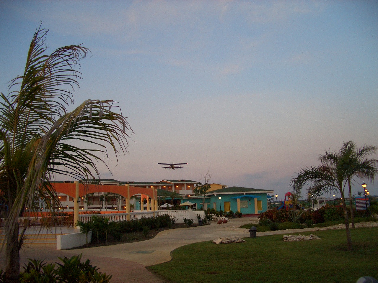 Partiamo il giorno dopo per Cayo Qualcosa su un aereo a elica tristissimo, e dopo un giro panoramico scendiamo e arriviamo nel nostro villaggio che scopriamo essere in una penisola disabitata e selvaggia e lontana decine e decine di km dal posto di blocco che evita la circolazione del popolo verso quella penisola, dove sono ammessi, e perquisiti, solo gli operatori che lavorano nel villaggio.